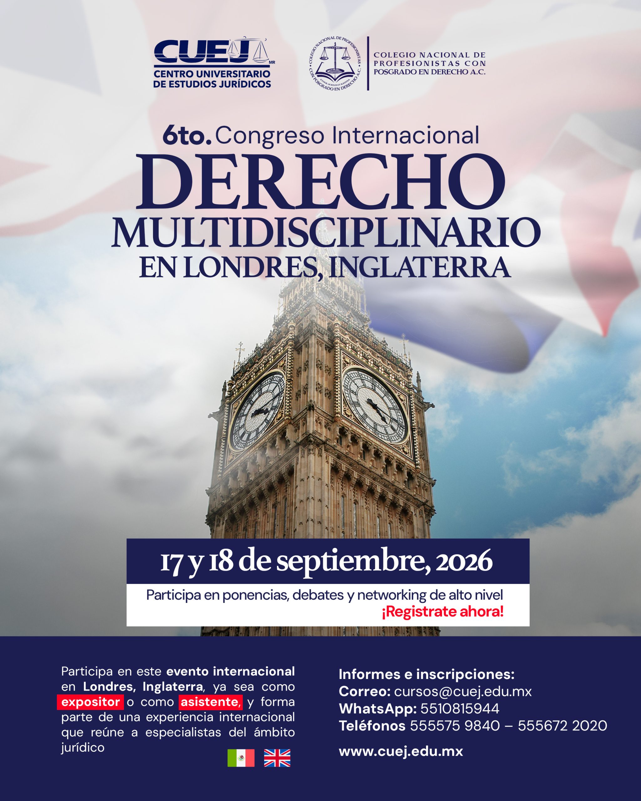 Únete al 6.º Congreso Internacional de Derecho Multidisciplinario, este septiembre de 2026 en Londres, uno de los principales centros jurídicos y financieros del mundo.